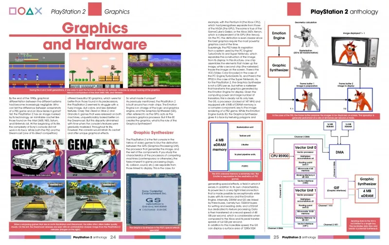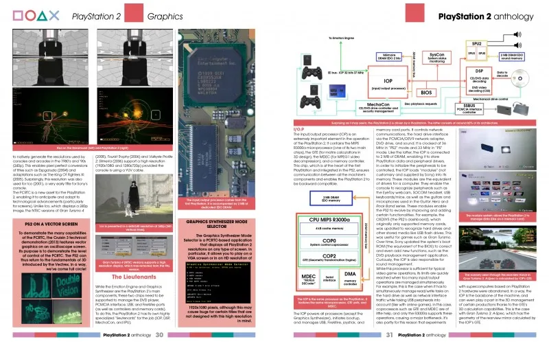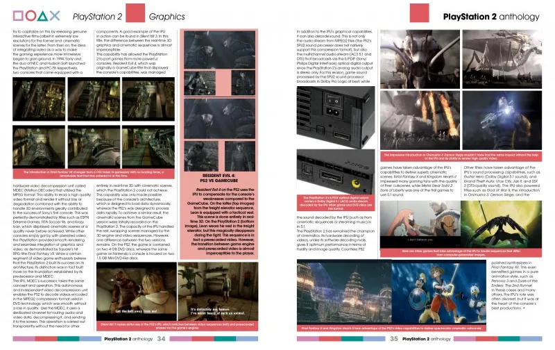 Das Hardware-Kapitel konzentriert sich diesmal auf die Grafikarchitektur der PS2 – und erklärt, wie die Konsole visuell so beeindruckende Ergebnisse erzielen konnte. Dazu kommen ein Überblick über seltene und Collector's Editions, offizielles und Drittanbieter-Zubehör in großer Breite sowie der zweite Teil der unveröffentlichten Spiele.