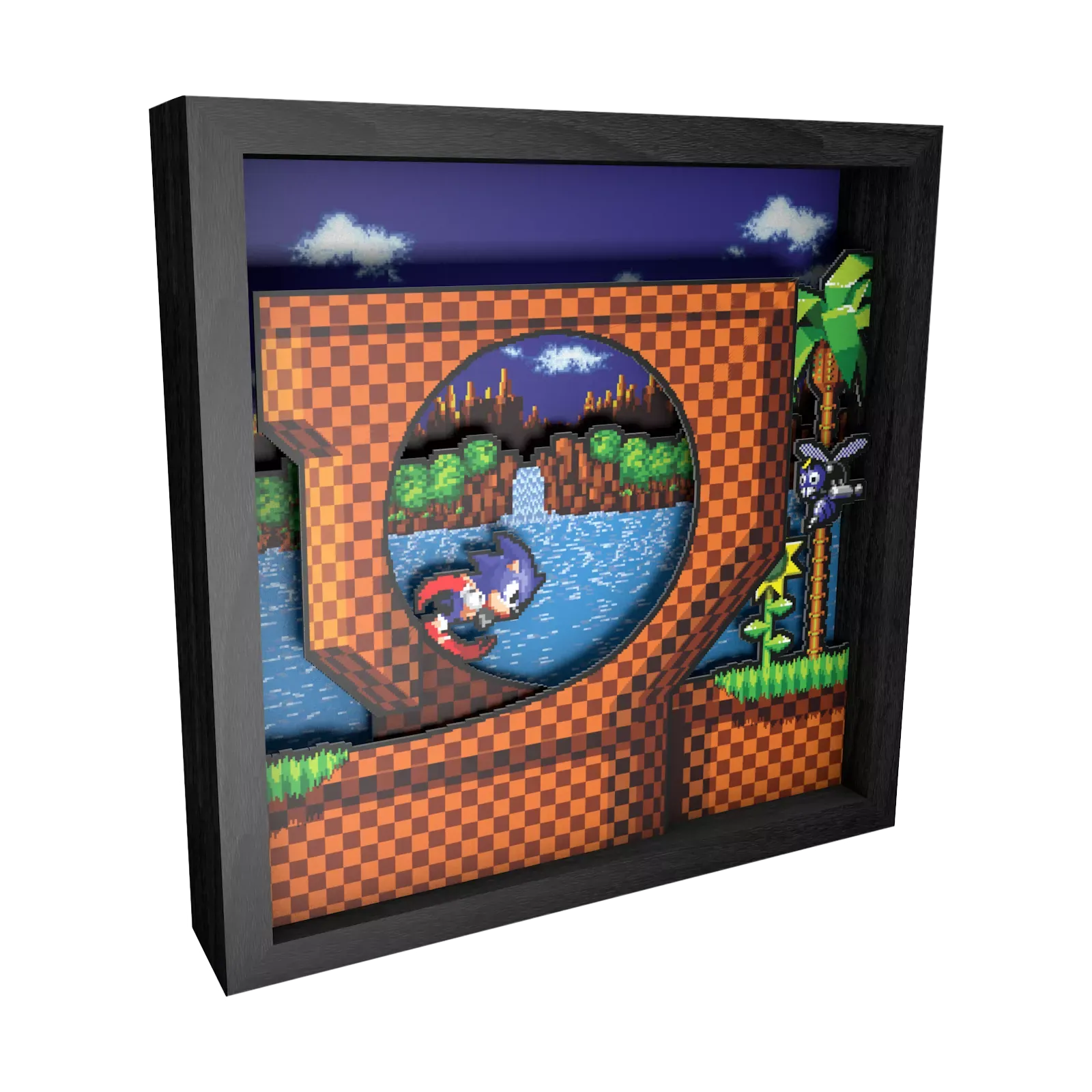 Der Sonic Loop Pixel Frame verwandelt einen ikonischen Moment aus der legendären Sonic-Serie in ein beeindruckendes 3D-Wandbild für Dein Zuhause!