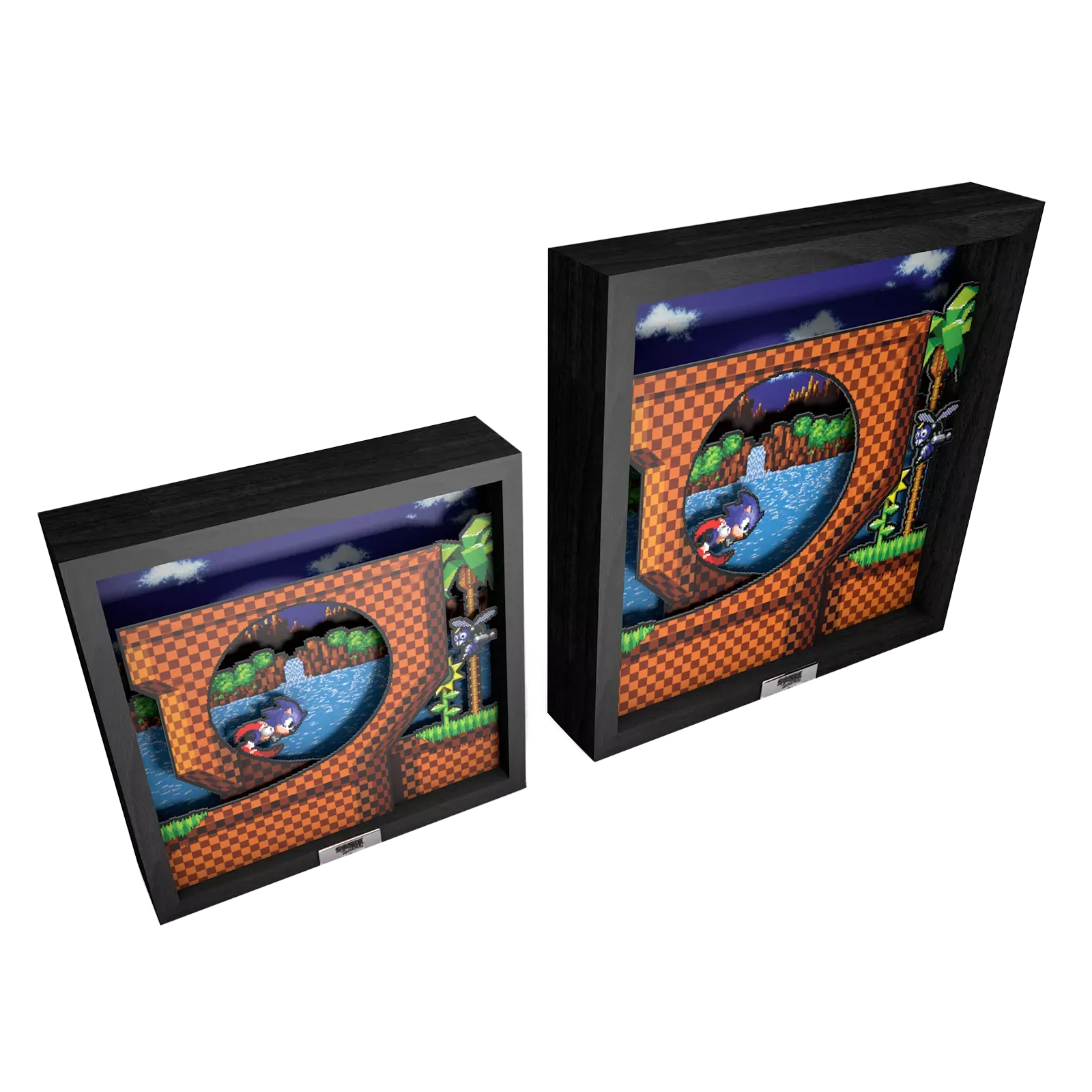 Was Pixel Frames so besonders macht, ist ihre innovative Bauweise: Durch mehrere präzise übereinander angeordnete Ebenen entsteht ein faszinierender Tiefeneffekt. Vordergrund, Mittelgrund und Hintergrund sind sorgfältig getrennt, sodass die ursprünglich zweidimensionale Pixelgrafik eine völlig neue, dreidimensionale Wirkung erhält. Dieser Effekt ist besonders bei Sonic-Motiven spektakulär – die ikonischen Loops und Landschaften wirken plötzlich zum Greifen nah!