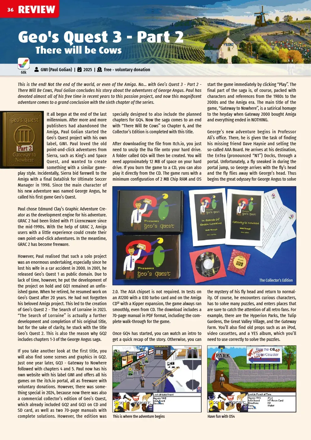 Book: Three Lives For Games, Board Game vs. Amiga - Star Fighter , Phantom Leap, Freak Out, Callback, Geo´s Quest 3 - Part 2 - There will be Cows, Hyper Sports Port, Yeet, Alien Breed 3D II The Killing Grounds, AmiBrixx, Aminet News, AmigaOS 4.1 Update 3, Amiga Future Archive DVD #6, FrameThrower, Retro-Printer.
